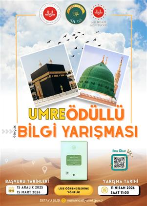 Lise ve üniversite öğrencilerimize yönelik olarak düzenlenen Umre Ödüllü Bilgi Yarışması için başvurular başlamıştır.