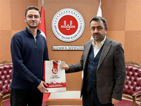 Diyanet İşleri Başkanlığımızca 2025 yılı lise ve üniversite öğrencilerine yönelik olarak düzenlenen Umre Ödüllü Bilgi Yarışmasında dereceye girerek umre ibadetini yerine getiren öğrenciler, Kayseri İl Müftümüz ve Türkiye Diyanet Vakfı Kayseri Şubesi Başkanı Durmuş Ayvaz tarafından makamında kabul etti.