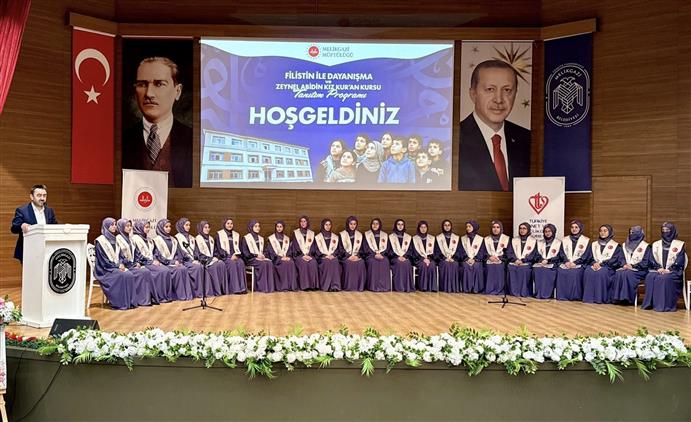 Melikgazi İlçe Müftülüğüne bağlı Zeynel Abidin Hafızlık Kız Kur’an Kursu tarafından düzenlenen “Filistin ile Dayanışma ve Zeynel Abidin Hafızlık Kız Kur’an Kursu Tanıtım Programı”, 3 Nisan Cuma günü Melikgazi Belediyesi Tiyatro Salonu’nda gerçekleştirildi.