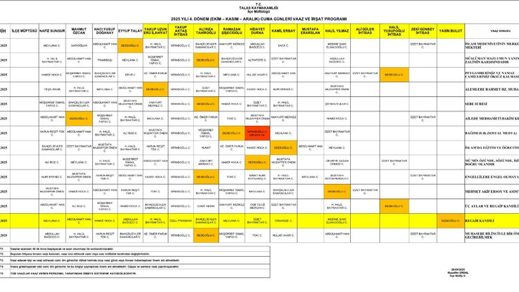 2025 YILI 4. DÖNEM (EKİM – KASIM – ARALIK) CUMA GÜNLERİ VAAZ VE İRŞAT PROGRAMI