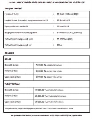 2026 YILI HALKA YÖNELİK GENİŞ KATILIMLI HAFIZLIK YARIŞMASI ŞARTNAMESİ